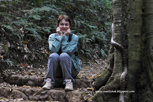 "Эта лиана очень похожа на питона... Ой, так это и есть питон!" - Воскликнула я, указывая на морщинистый ствол дерева, обвитый красивым змеиным тельцем. Молодой двухметровый питончик грелся в редких солнечных лучах, с трудом пробивавшихся через плотный полог дождевого леса.